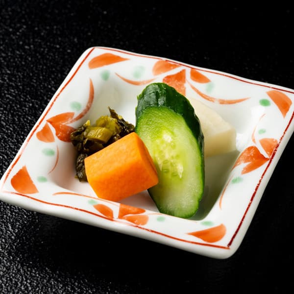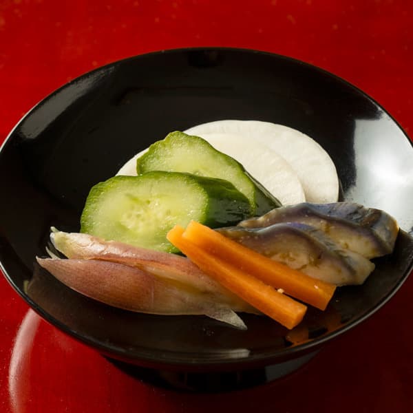 Pickles | This essential food in Japanese cuisine is made by pickling and maturing various ingredients in salt, vinegar, sake kasu, and rice bran to enhance its flavor.